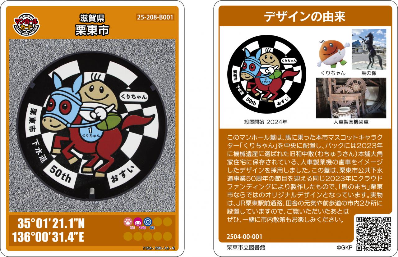 2025年4月から栗東市立図書館で配布されていました「くりちゃん」が描かれたマンホールカードの在庫がなくなりましたので、今年度の配布は終了いたしました。